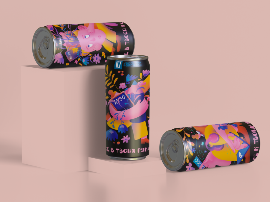 Разработка этикеток под три темы для бренда крафтового пива. За основу для этой серии я решила взять будни студента вышки. Главная героиня — студентка, которая старается совмещать учебу и работу, успевать на пары, генерировать идеи и не перегорать.