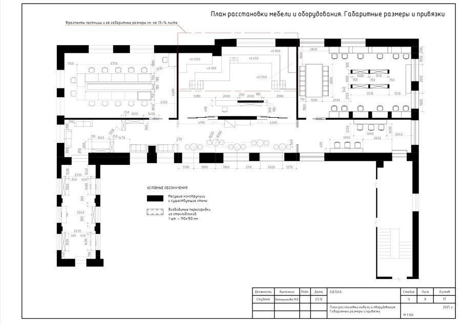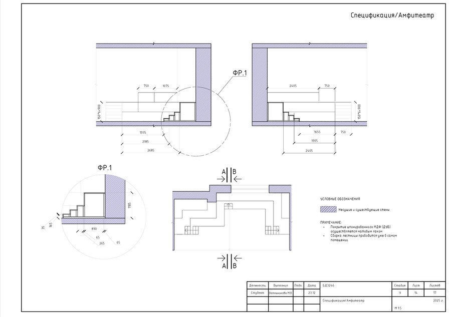 Чертежи включают в себя планы, виды, разрезы, отдельные элементы мебели кластера.