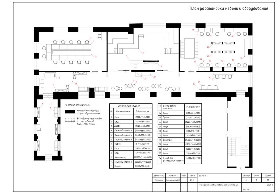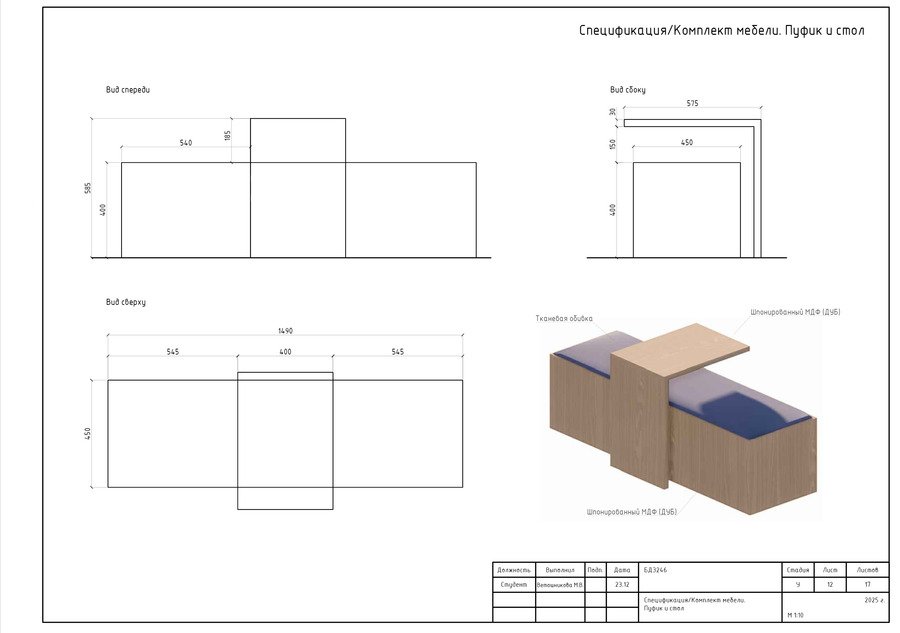 Кроме того, представлены чертежи мебели, разработанной специально для кластера.