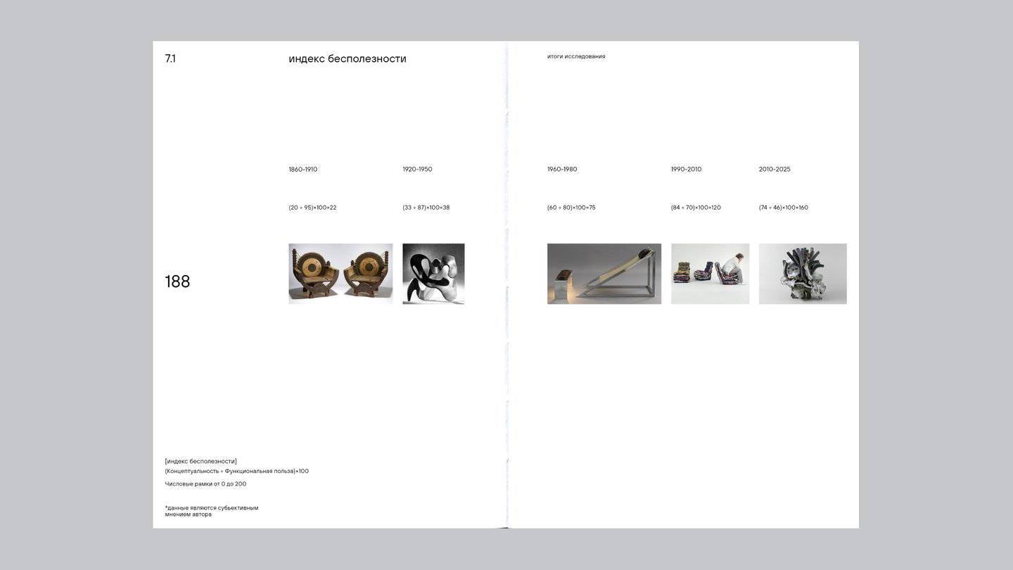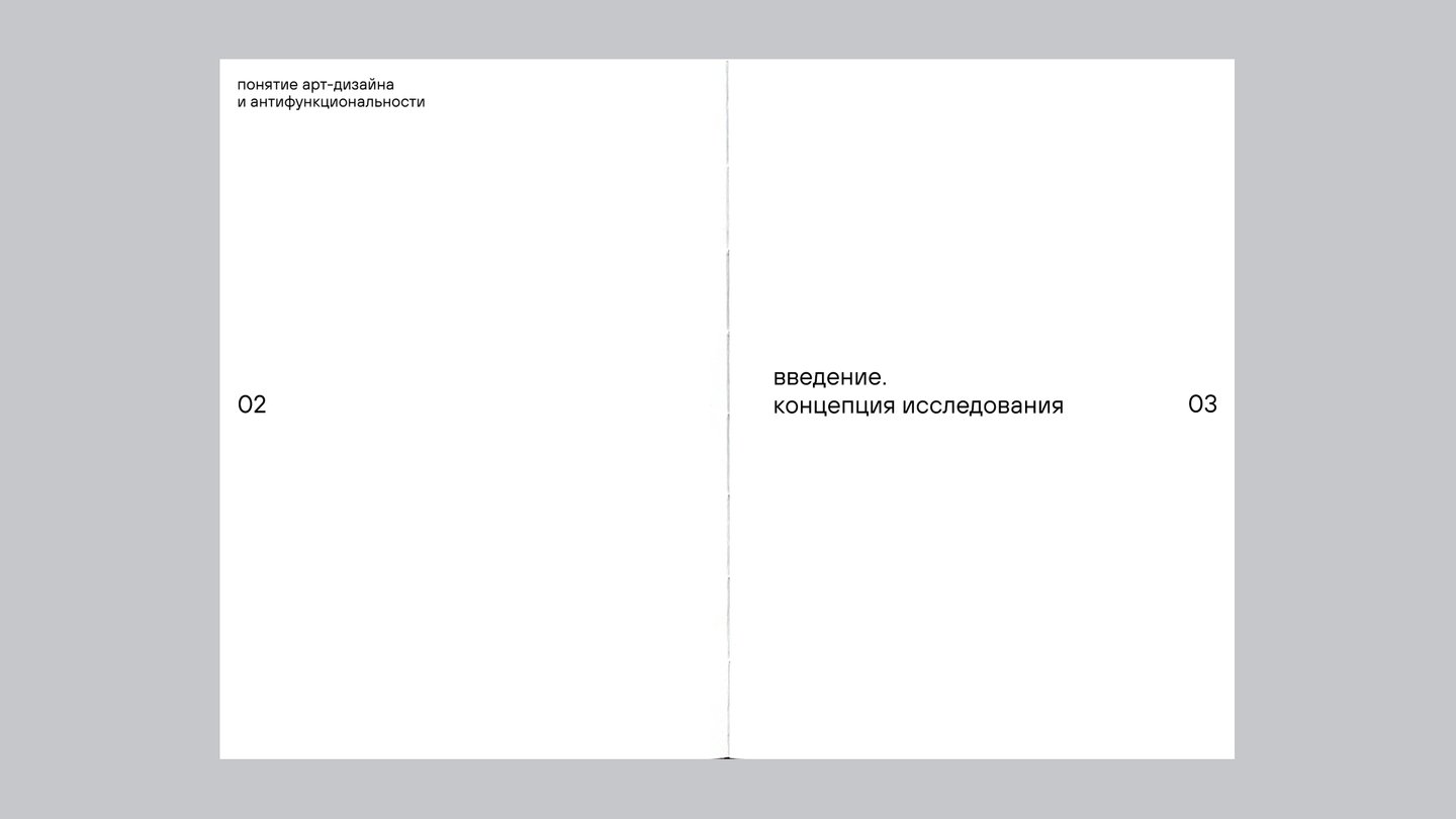 Исследование направлено на изучение такого направления как арт-дизайн, его цель — показать, что антифункциональные объекты в дизайне возникают не случайно, а как художественная реакция на культурные, социальные и исторические вызовы