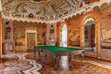 Два крупных итальянских живописца Стефано Торелли и Серафино Бароцци работали над росписью таких обширных интерьеров, как Зал муз, Большой китайский кабинет, кабинеты Екатерины II и Павла, Будуар и др. Уникальны по своему художественному значению паркеты дворца общей площадью 722 кв. метра. Они набраны из отечественных и «заморских» древесных пород — красного и черного дерева, амаранта, самшита, персидского ореха, клена, березы, дуба. В отдельных наборах насчитывается до 15 различных пород дерева. По богатству и разнообразию древесных пород, по сложности рисунка набора и мастерству исполнения паркеты Китайского дворца не имеют себе равных в мире.