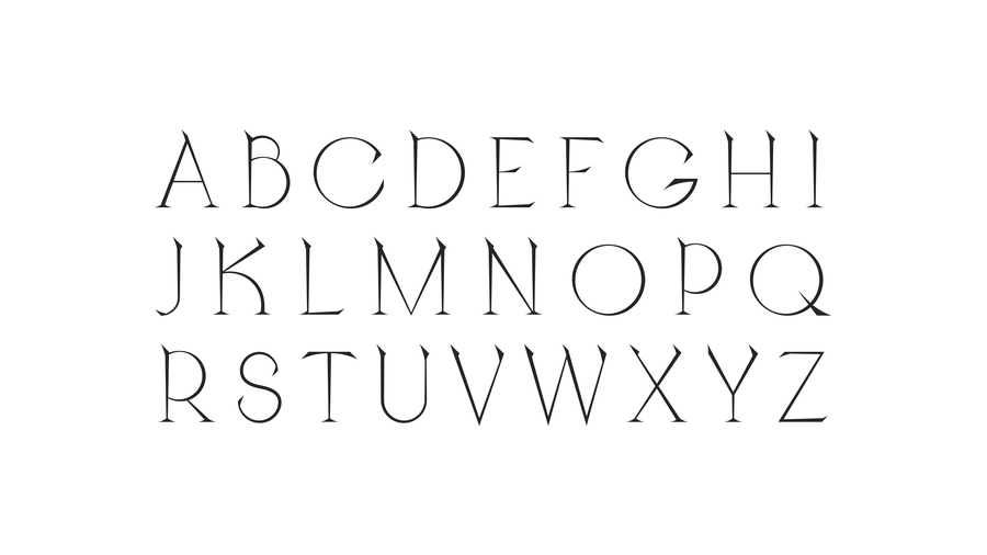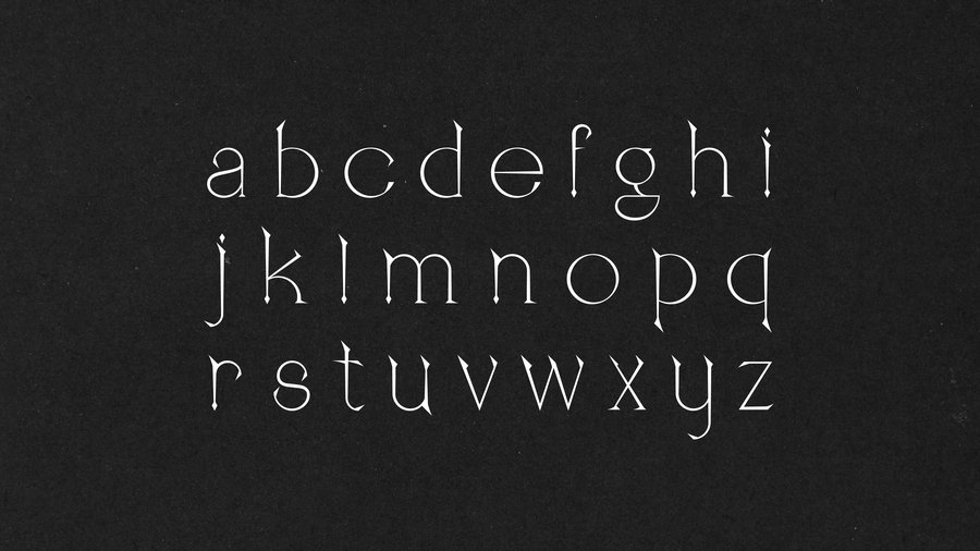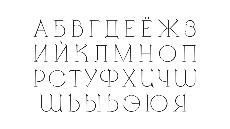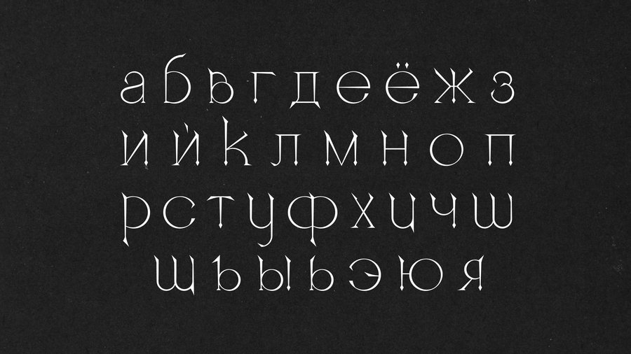 «Клинок» — шрифт, основанный на образах холодного оружия. изменение толщины линий напоминает лезвие, от тяжелой массы к острому краю. Засечки работают как символы острых форм — мечей и наконечников стрел.