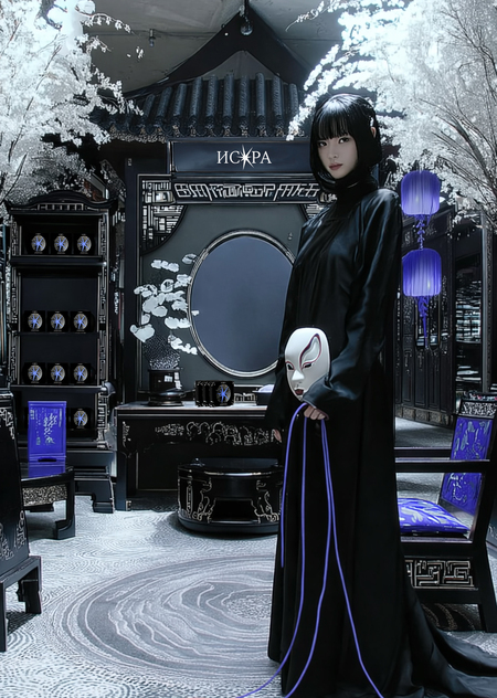 PR-зона для бренда хайлайтеров, вдохновленного древней китайской легендой, представляет собой пространство в торговом центре, стилизованное под архитектуру страны. В ее оформление включены зеркало, цветущие деревья, столик для макияжа с косметикой бренда, китайские фонари и демонстрационные полки с продукцией.