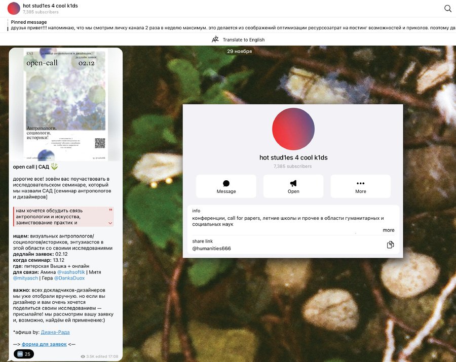 1. Афиша, которую подготовила Гера 2. Объявление о поиске участников в канале «hot stud1es 4 cool k1ds»