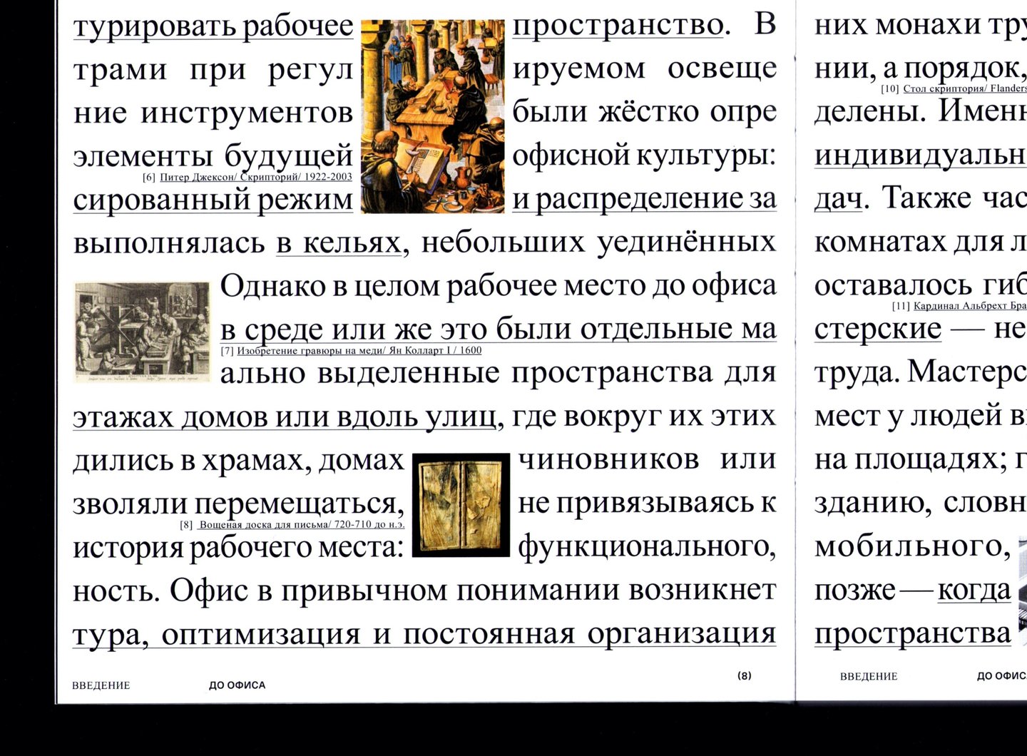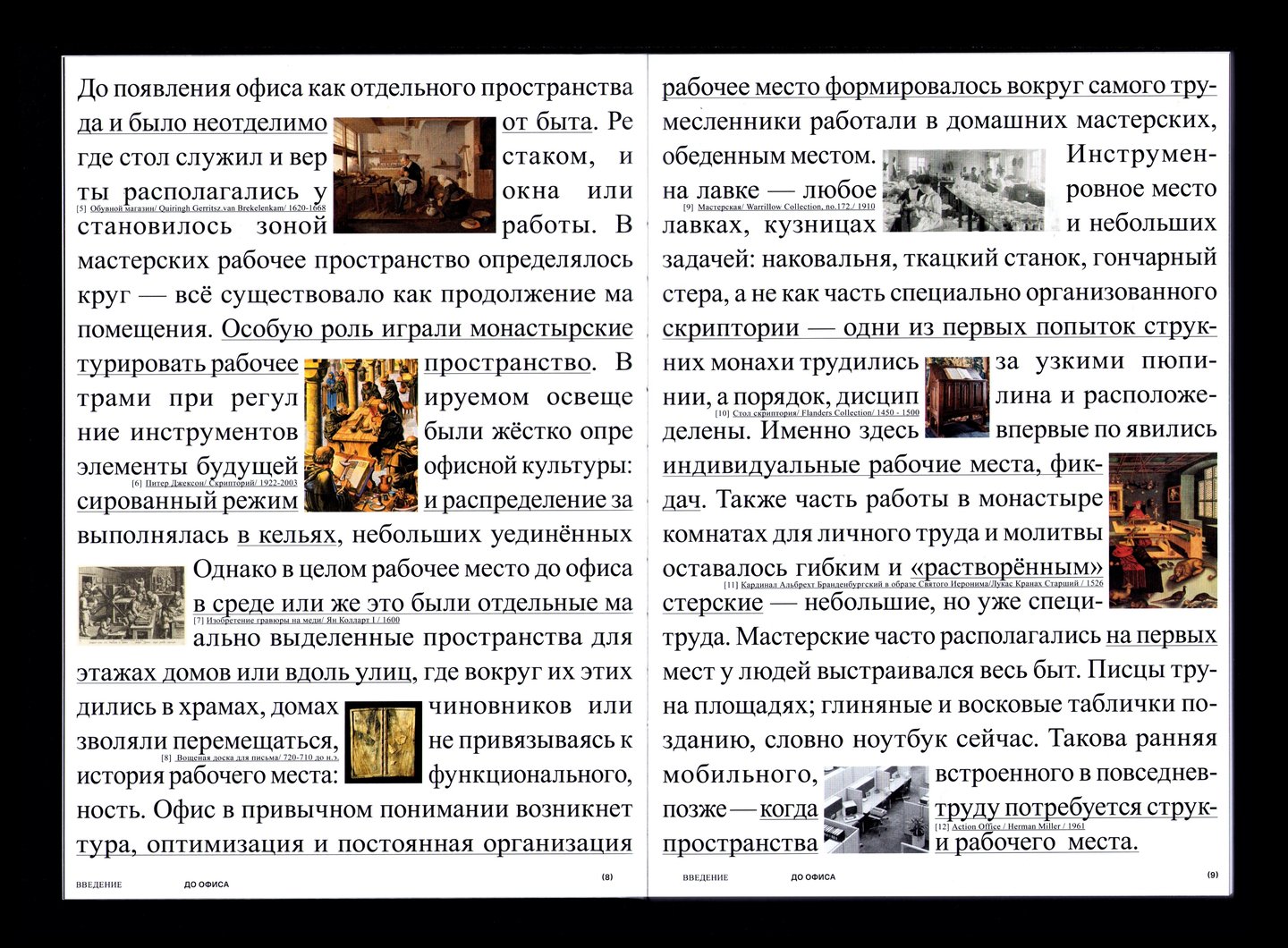 В книге исследуются эволюционные процессы рабочего места на разных уровнях: от пространства, до предметов на столе.