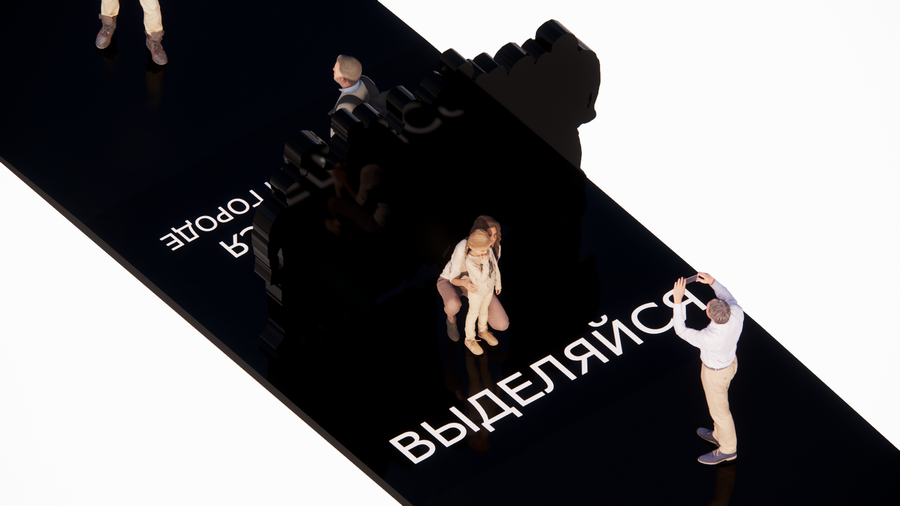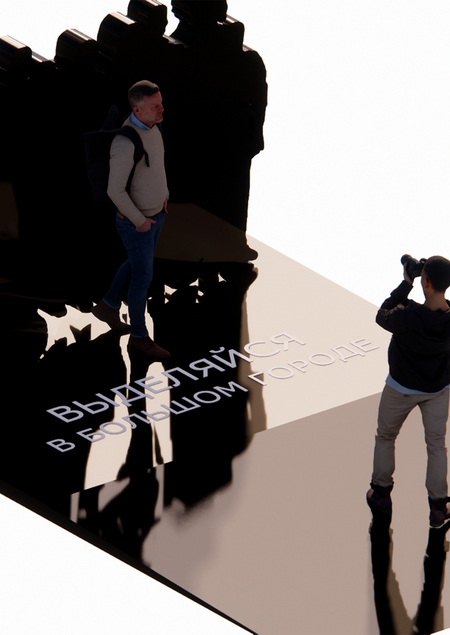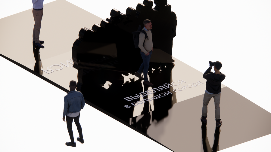 Большой город — это прежде всего люди. Миллионы лиц, голосов, историй, которые сливаются в единый поток. Но именно в этом потоке рождается уникальность — те, кто не боится быть собой, кто выделяется, кто создаёт новое. Инсталляция — это метафора большого города и каждого, кто в нём живёт. Мы предлагаем не просто объект для фото, а пространство для личного высказывания. Каждый, кто поднимается на подиум, буквально «возвышается» над толпой, становясь центром внимания, героем своего собственного нарратива.