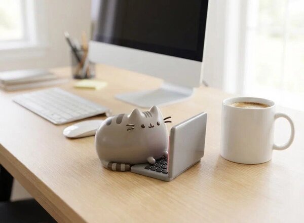 В интернете очень популярен персонаж Pusheen. Это забавная минималистичная кошка за авторством Клэр Белтон и Эндрю Даффа. Персонаж появляется в различных мини-комиксах и мемах, и стал уже полноценной частью интернет культуры. Для своего проекта мне захотелось воплотить этого очаровательно нарисованного зверька в виде объёмной фигурки, которая может стать компаньоном в доме, находясь в самых привычных местах: на кухне, в спальне, за рабочим столом и т. д.