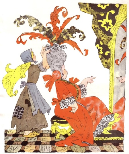 Характерный прием дуэта в оформлении книг — отсутствие привязки сказки к эпохе, в которую она была написана — Булатов и Васильев скорее сами решают, в какой исторический период поместить сюжет, чтобы добиться максимальной выразительности. Так, например, в образах сестер и мачехи мы можем увидеть костюмы эпохи рококо, декорированные разнообразными акварельными текстурами, красочными принтами, причудливыми перьями и цветами. Иллюстраторы вновь тонко чувствуют психологию ребенка, создавая героев, которые легко остаются в памяти за счет выразительных художественных средств.