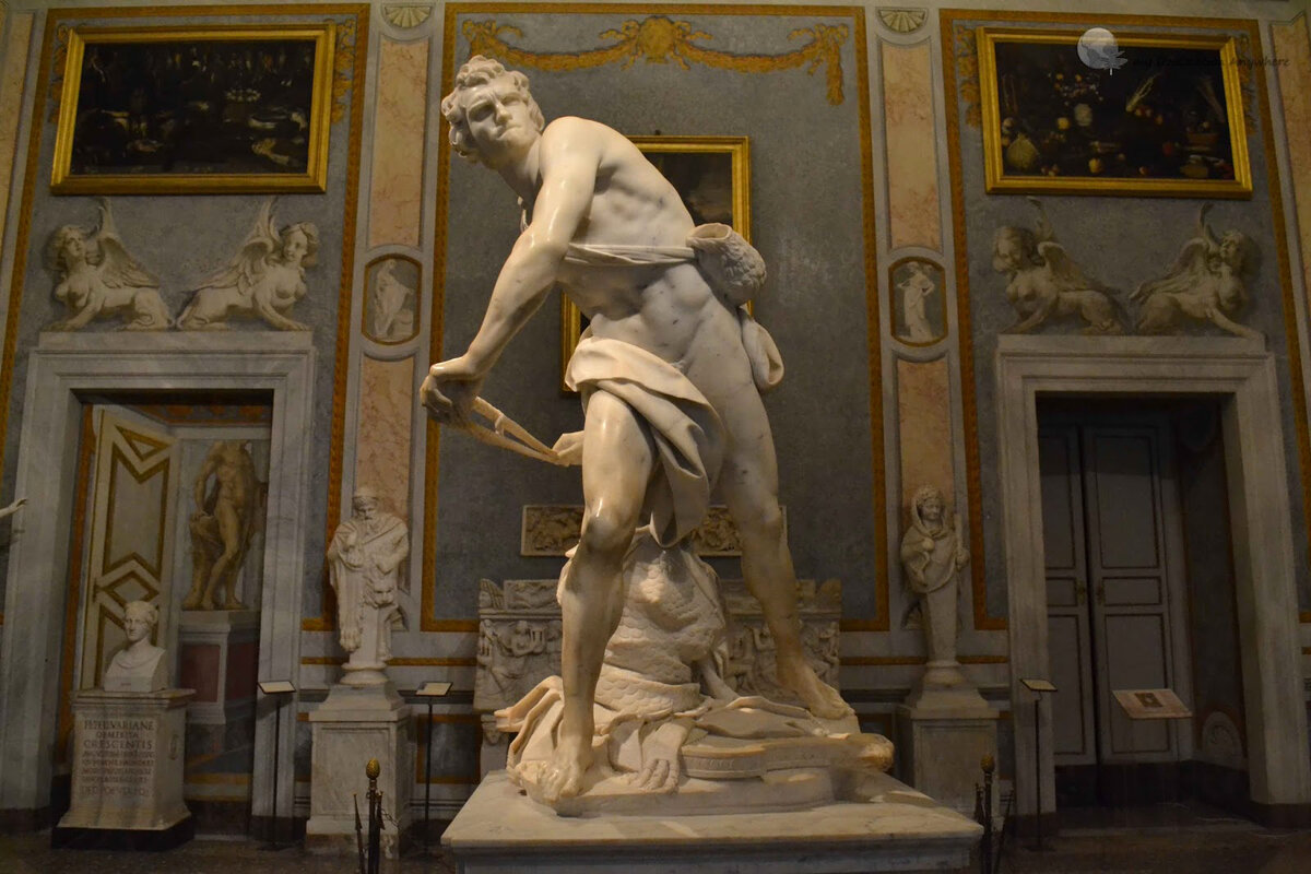Следующая скульптура также принадлежит Лоренцо Бернини и была создана на год раньше предыдущей. В ней мрамор буквально оживает, создавая ощущение стоп-кадра библейского сюжета. Здесь изображён юный Давид, но не в момент победы над Голиафом, как это часто изображалось ранее, а в кульминации напряжения — за секунду до броска камня.