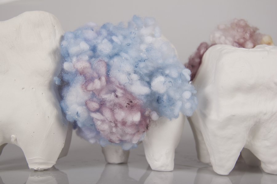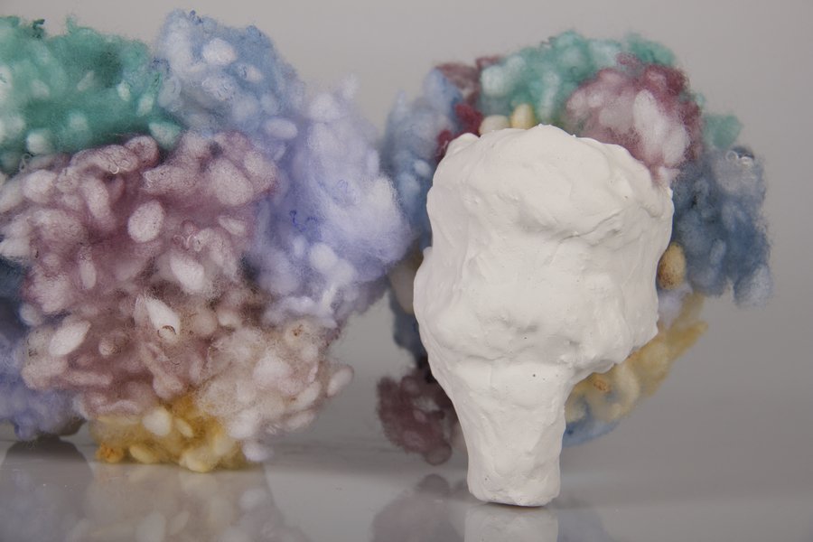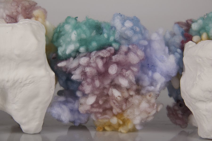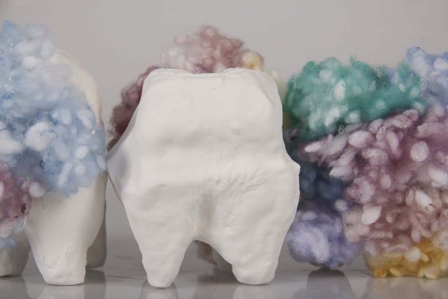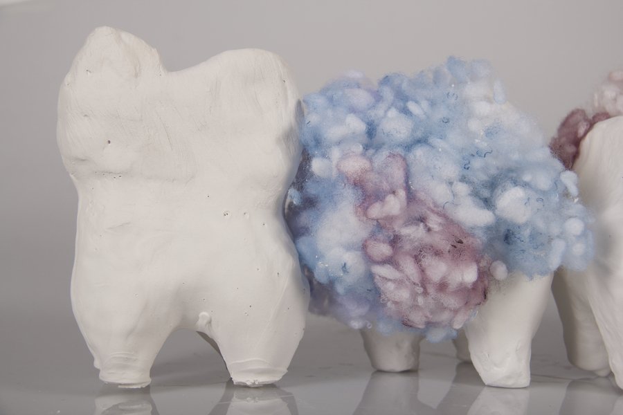 В каждом зубе постепенно всё меньше гипсового зуба и всё больше символизирующего сюрреалистичность разноцветного холлофайбера.