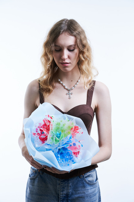 Мне понравилось работать с формой цветов и смешением оттенков, поэтому я собрала цветочную композицию как часть проекта. Увлекаясь созданными вручную украшениями ещё до работы с пластиком, я решила соединить их с цветами в одном проекте так, чтобы они взаимно дополняли друг друга. Так родилась концепция Bloom Yourself: украшение и цветок, подчёркивающие, что каждая девушка раскрывает свою красоту по-разному.