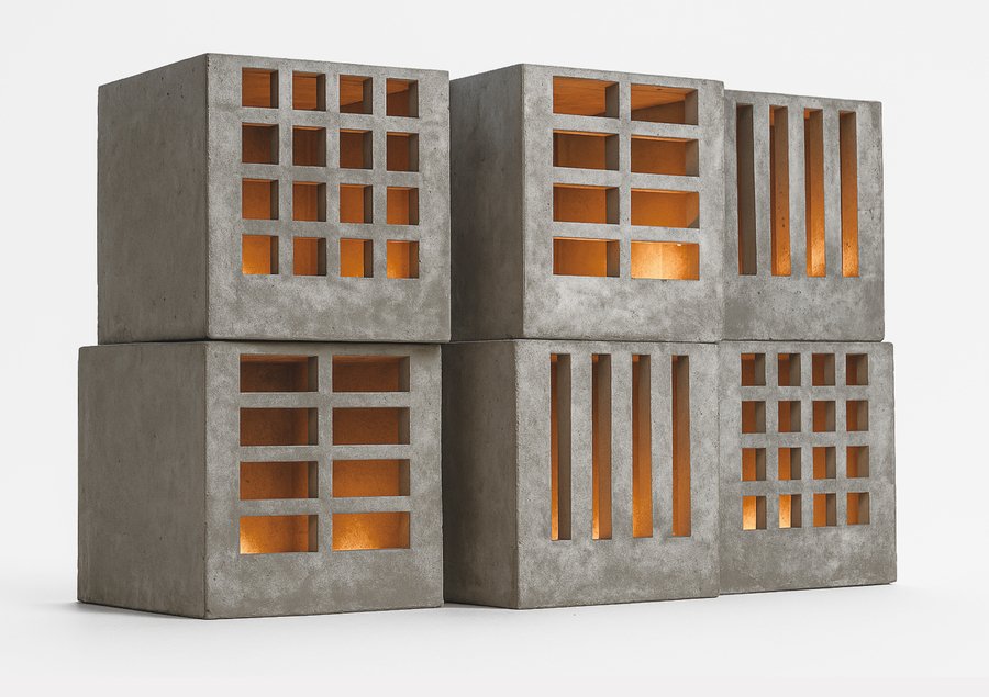 Лицевая сторона — буквы, задняя сторона — «окна». Когда кубы стоят задней стороной к стене, свет из фигуры проецируется на стену, создавая «световые окна», которые повторяют индустриальные ритмы окон в домах. В сочетании с текстурой бетона создается атмосфера города.