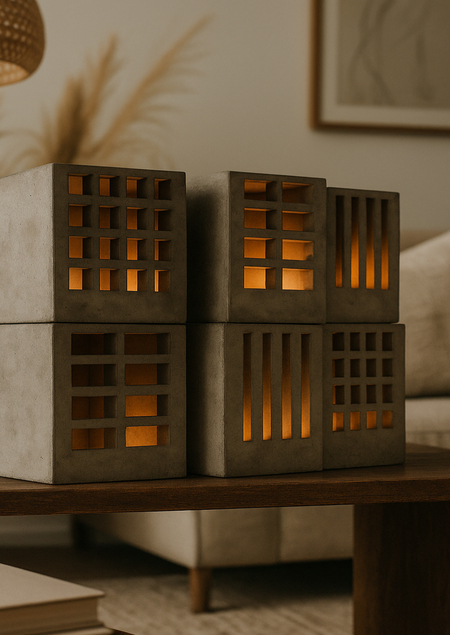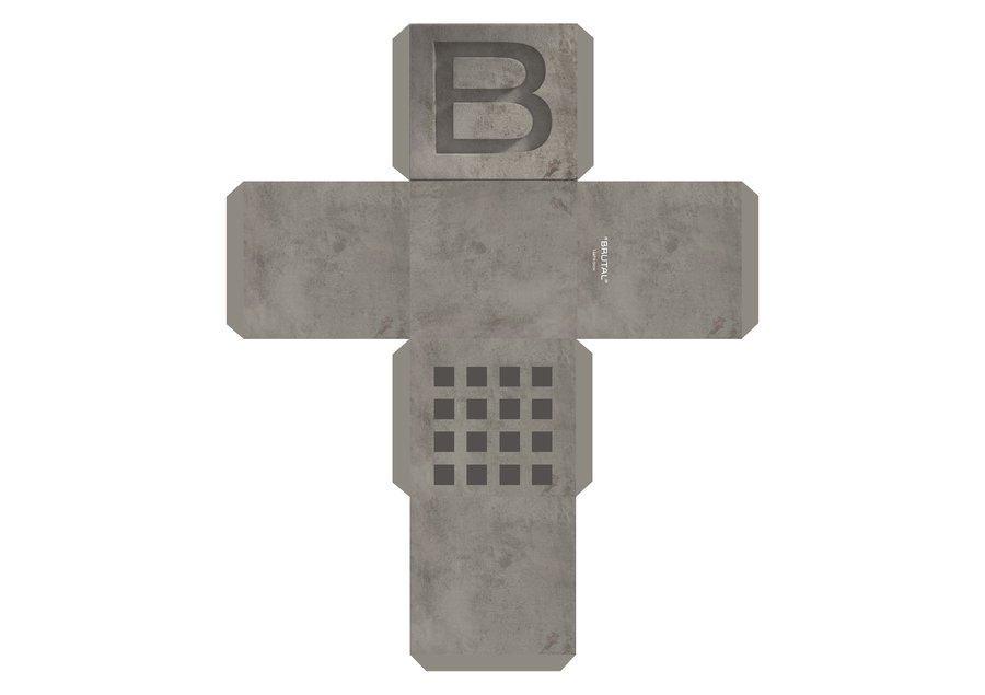 Серия новогоднего декора, состоящая из 6 кубов светильников, которые представляют из себя слово «BRUTAL». Кубы являются модулями, которые можно складывать, сочетая между собой буквы, световые элементы и ровную поверхность бетона.