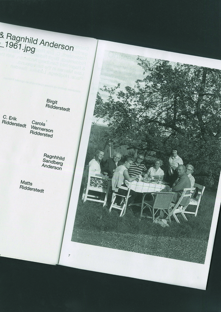 A book about a file I happen to have. File: «Stefan & Ragnhild Anderson coffee group_1961.jpg». This is one of the pictures of family dinners (two close families of Anderson and Riddersteadt). There’s an empty chair in the center of the frame, most likely the place of the man who took the picture. It’s an investigation book about a photographer who’s been unknown to anyone until now.