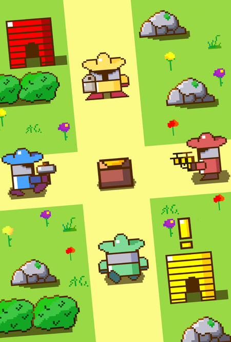 Место действия — королевская пасека. Игроки в роли рыцарей-пчеловодов собирают мед и мешают друг другу.