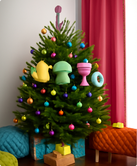 Пластиковые ёлочные игрушки VOL. предназначены не только для украшения, но и для активного взаимодействия с пользователем. Каждое изделие создано с акцентом на тактильность и осязаемое ощущение.