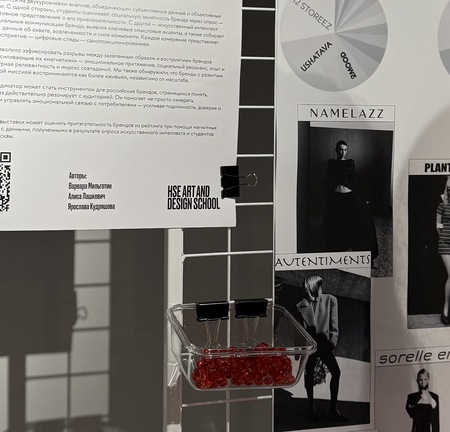 Каждый участник выставки может оценить притягательность брендов из рейтинга при помощи магнитных фишек и сравнить с данными, полученными в результате опроса искусственного интеллекта и студентов ведущих вузов Москвы.