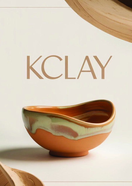 prompt: you are creating a brand named 'kclay', which sells home made clay crafts first of all you have to create a collage of: the brand name, the logo, main color scheme and typography