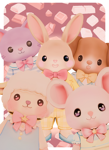 Это серия из пяти 3D-фигурок антропоморфных животных в милой, слегка наивной стилистике, вдохновлённой фигурками в духе Sylvanian Families.