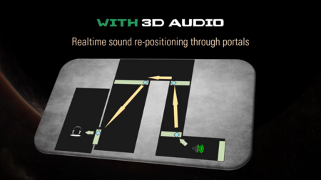 В ремейке Dead Space упор на 3D-звук: учитывается расстояние, направление, материалы поверхностей (металл, дверь, стекло). Звук за стеной приглушается и фильтруется, а через стекло частично просачивается. Используются порталы и пути распространения звука. Если враг в соседней комнате за дверью или за углом, звук перемещается и изменяется по маршруту и это очень сильно помогает ориентироваться на слух.