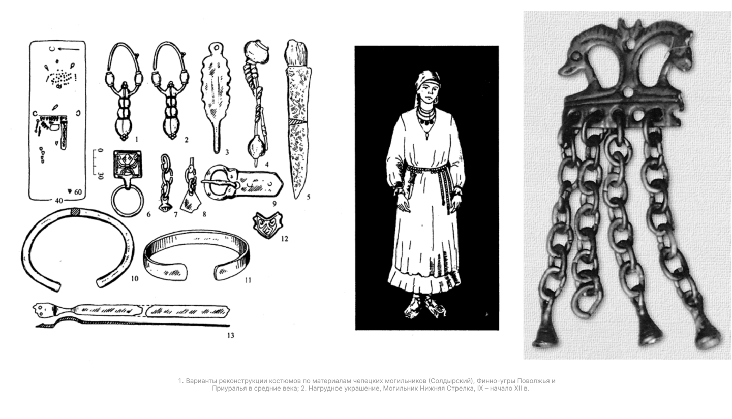 Образы животных — оленя, коня, хищных птиц — отсылают к звериному стилю Алтая и Южной Сибири. Эти мотивы символизировали силу, защиту, связь с тотемами рода и постепенно смешались с финно-угорскими представлениями, закрепившись в визуальной культуре региона.
