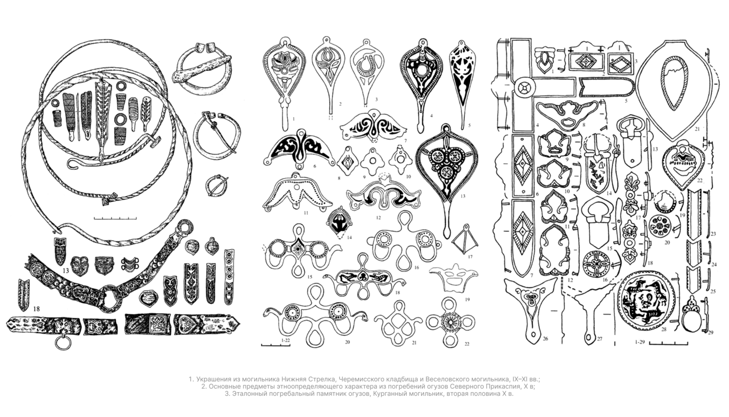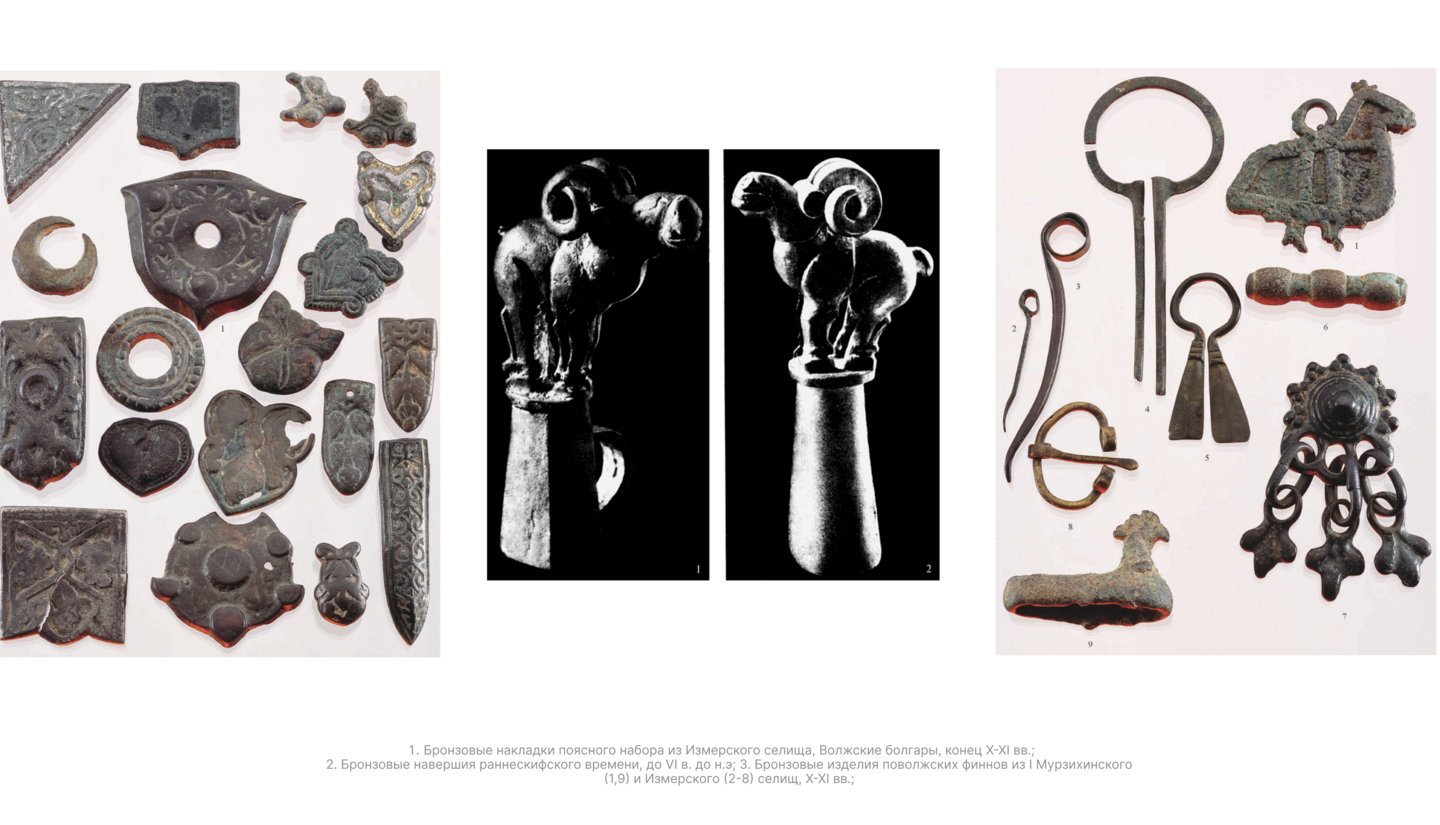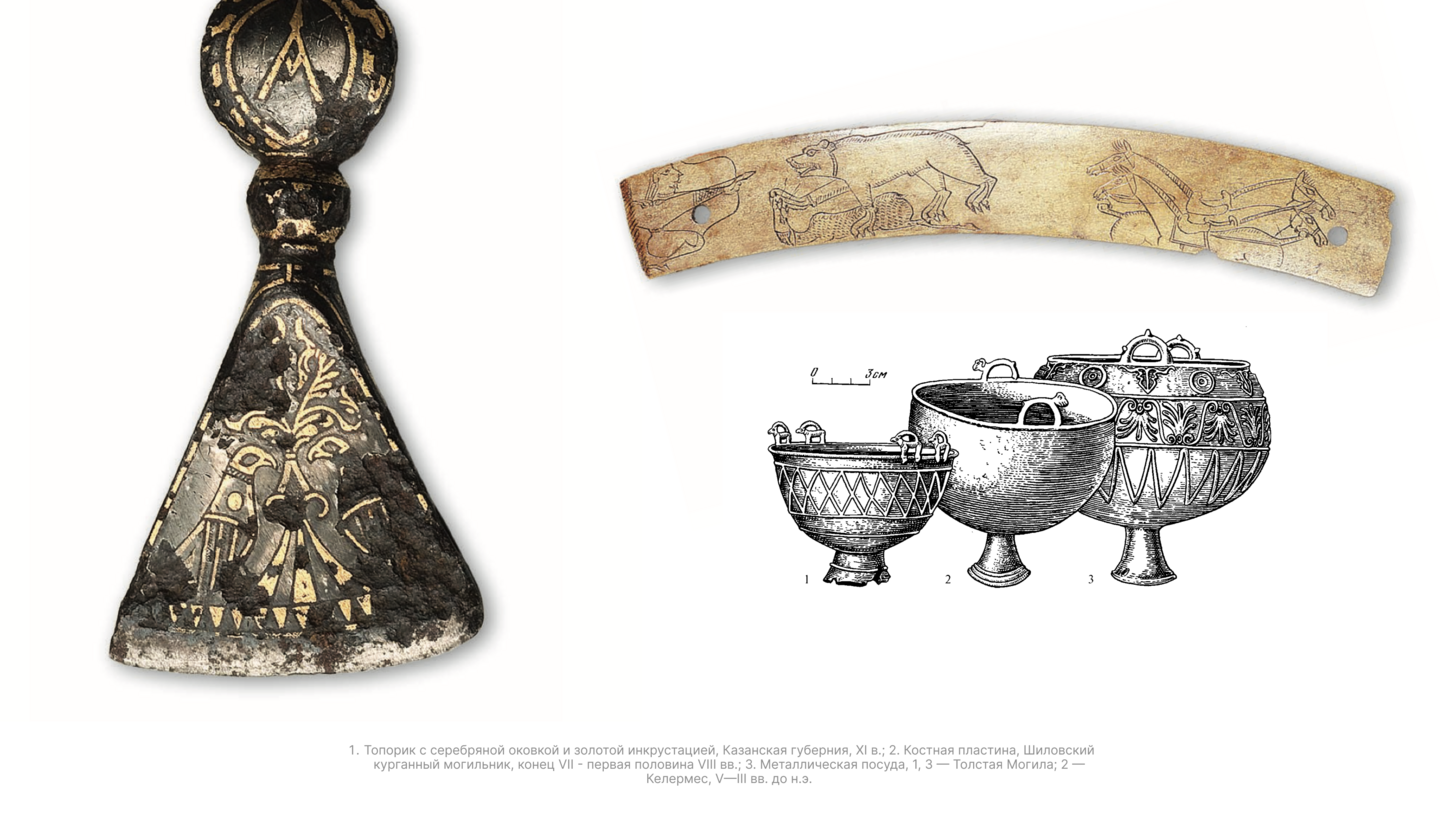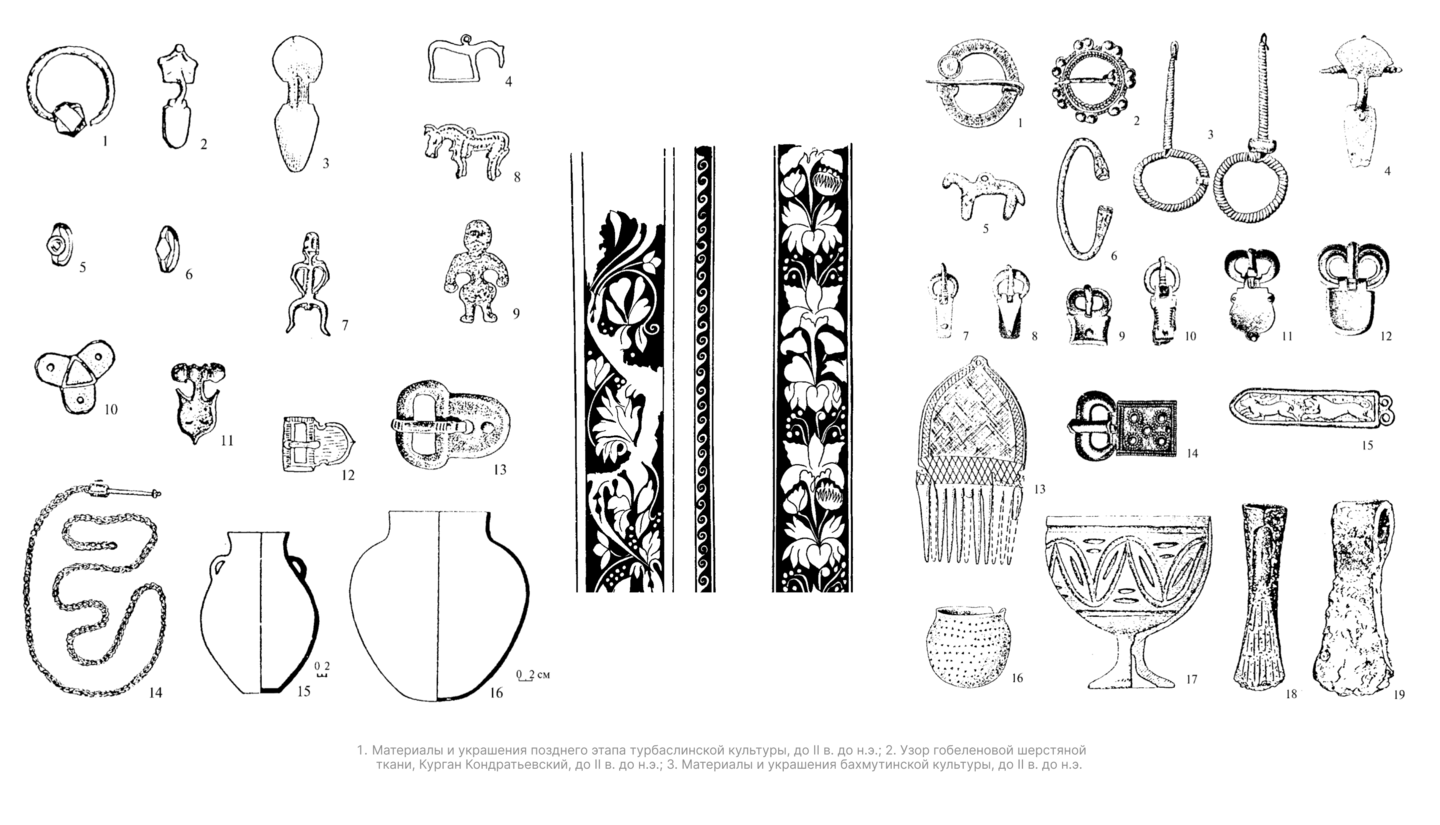 Культурный анализ Археологические артефакты того времени показывают набор культурных мотивов, характерных для всей степной цивилизации. Эти элементы встречаются в украшениях, оружии, керамике, погребальных конструкциях, конской сбруе, ритуальных предметах. Их можно интерпретировать как ранние визуальные архетипы, из которых позднее вырастут элементы тюркско-татарской культуры.