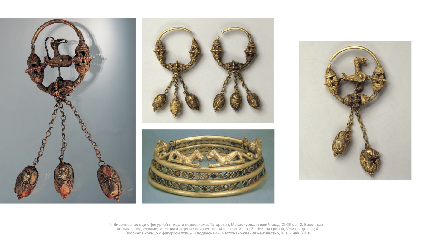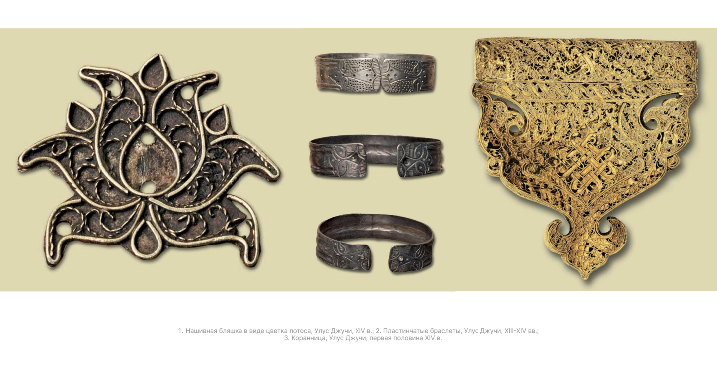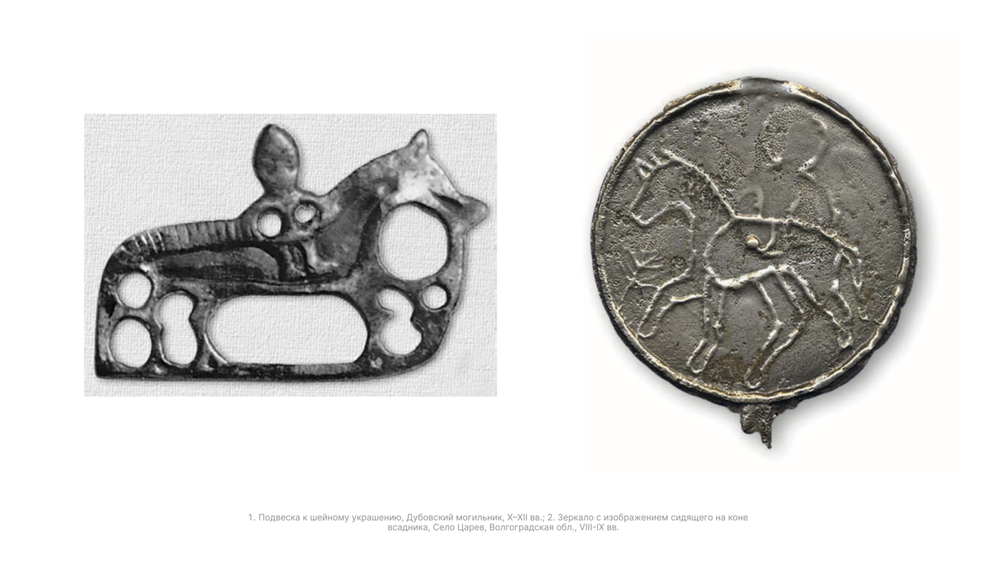 Новые зооморфные образы В Золотой Орде зооморфные мотивы получают новое развитие: ордынские мастера возрождают степной звериный стиль, используя оленей, птиц, хищников и фантастических существ в ювелирных изделиях, бляхах и предметах одежды, при этом смысл изображений меняется: если у ранних кочевников они были тотемными и обережными, то в Орде становятся скорее знаками статуса и декоративными символами, отражающими вкус.