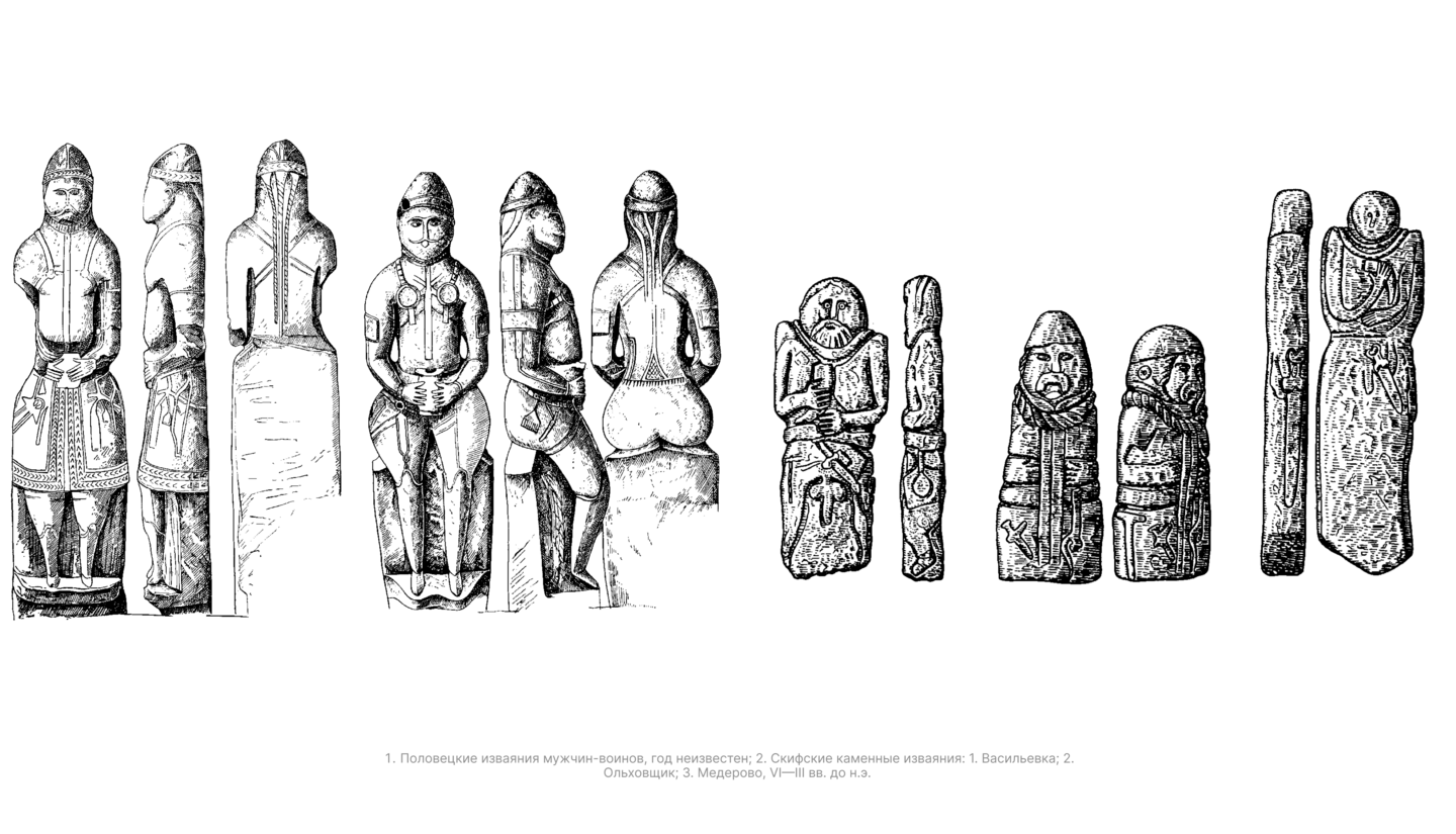 Каменные фигуры ставили как знак памяти и защиты рода. Это один из первых материальных способов фиксировать социальную идентичность. Помимо этого, они отличались культурной выразительностью. Лица, оружие, сосуды и жесты передавались условно, что формировало визуальный язык знаков, который позже повлиял на декоративную и символическую культуру региона.
