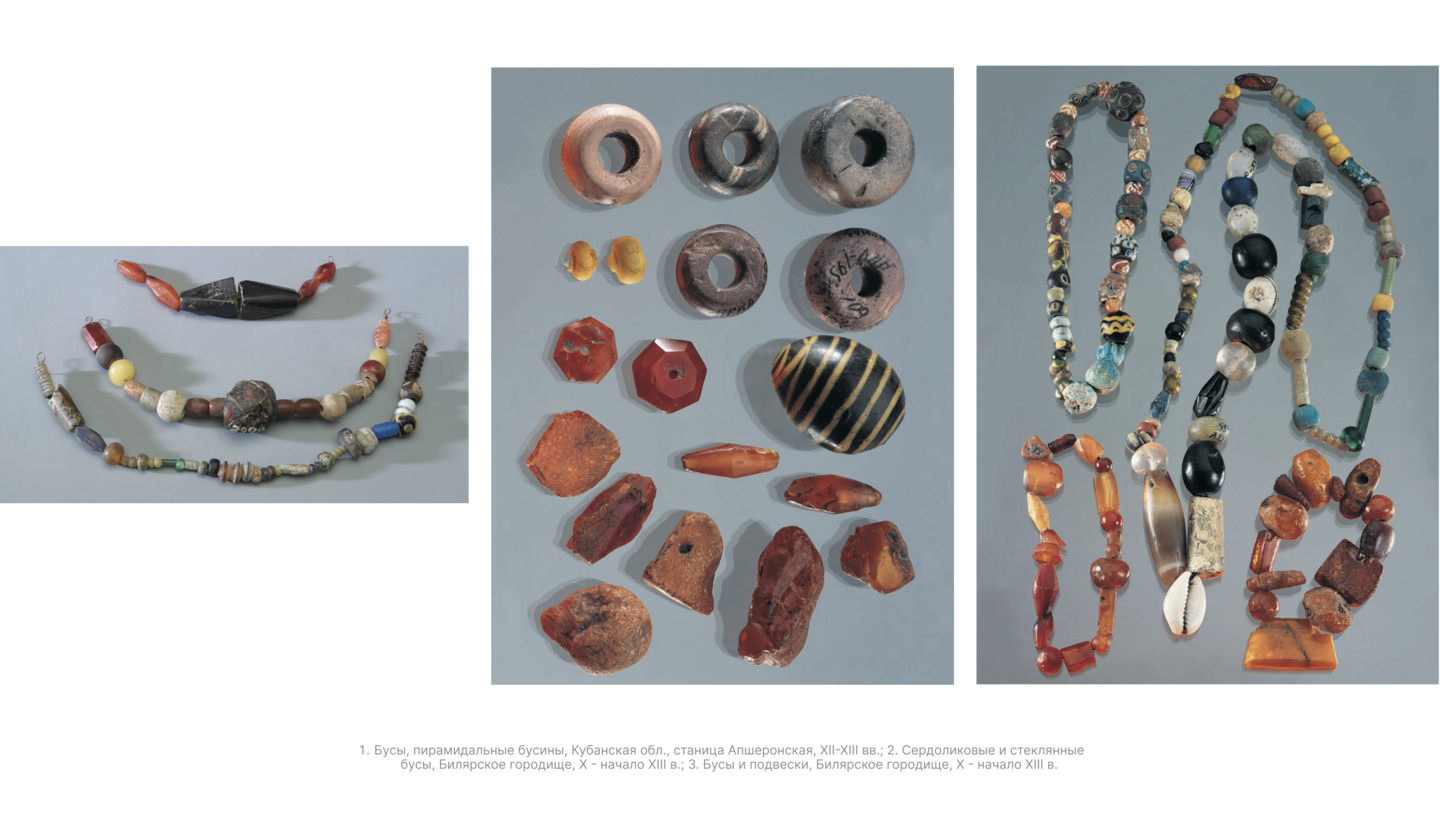 В контексте украшений и торговли Волжской Булгарии осуществляется импорт бус и подвесок из полудрагоценных материалов: сердолика, халцедона, лазурита, агатов и других.
