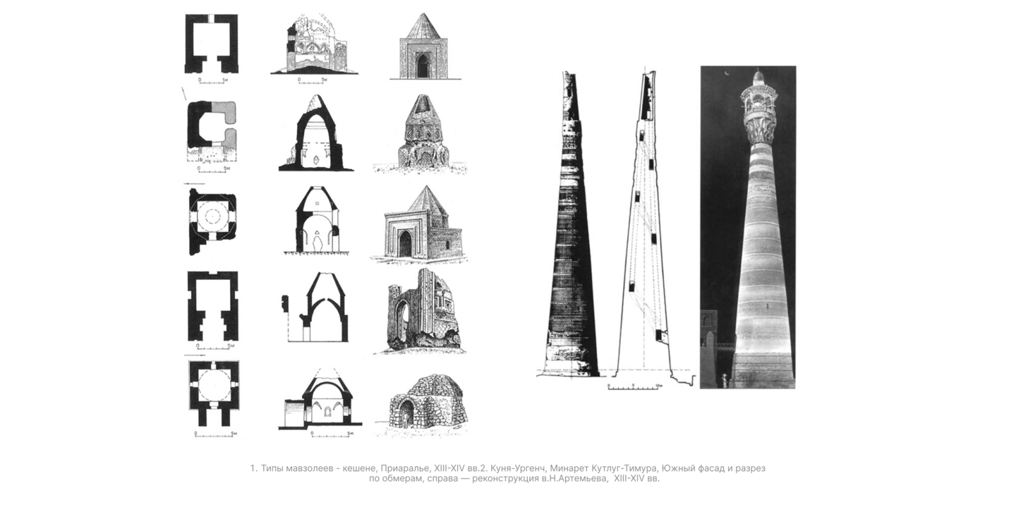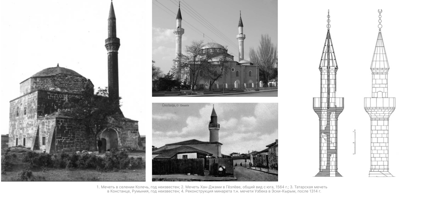 Такая форма — цилиндрический ствол + конусный или шатровый верх — отличает ордынские минареты от более поздних «луковичных» куполов., хотя эта форма встречается, например, в порталах.