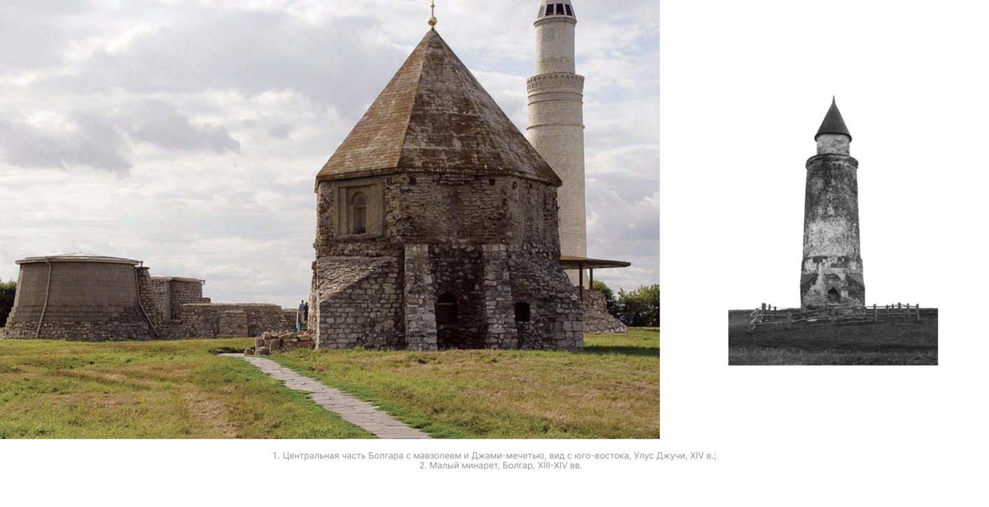 Каменные мавзолеи Болгара — примеры этой традиции: минареты, порталы, купол в форме усечённого конуса. Такие формы заложили основу для дальнейшей архитектурной идентичности региона, благодаря чему татарская культура могла самоидентифицировать себя.