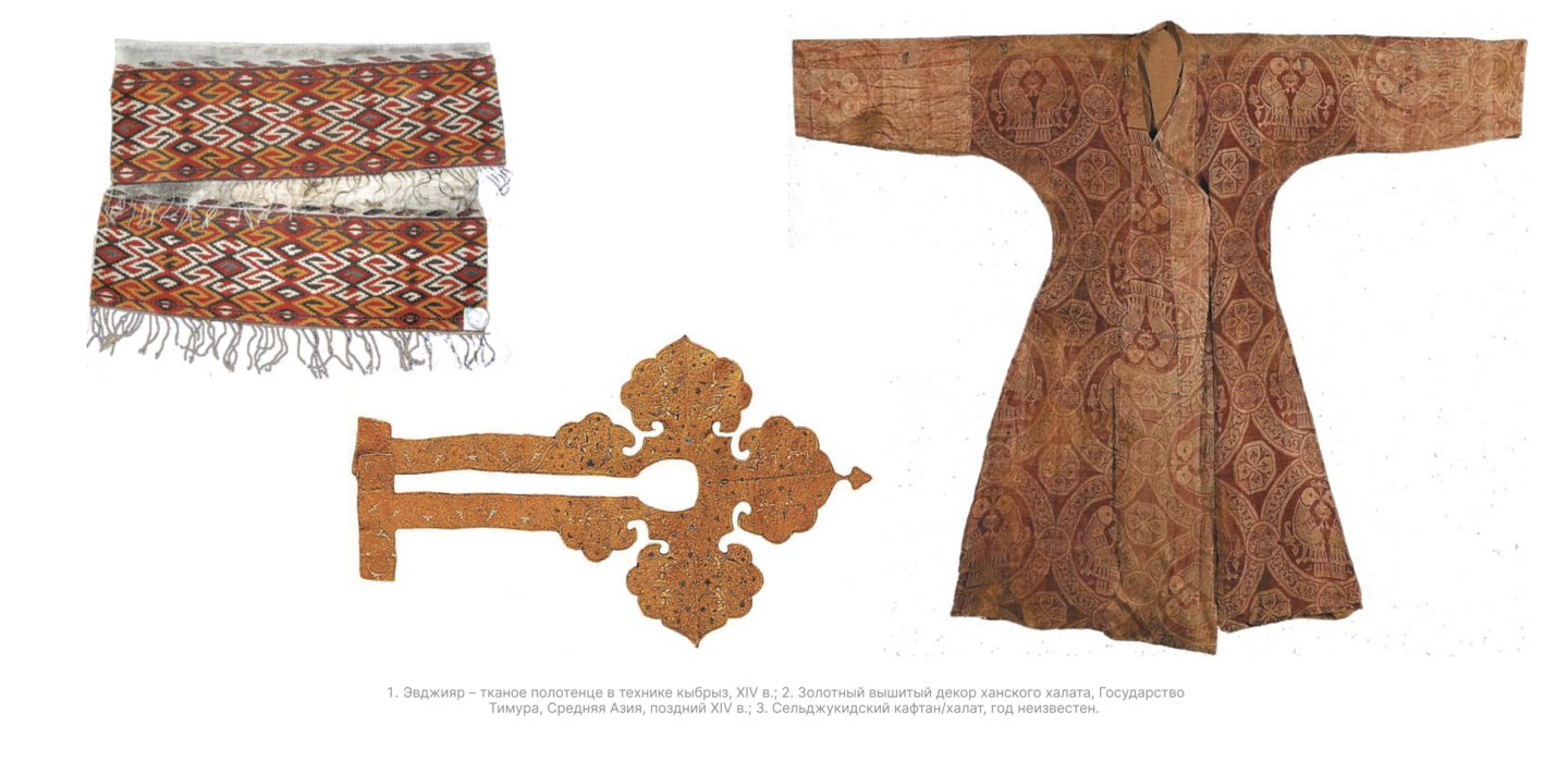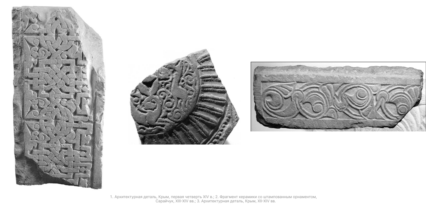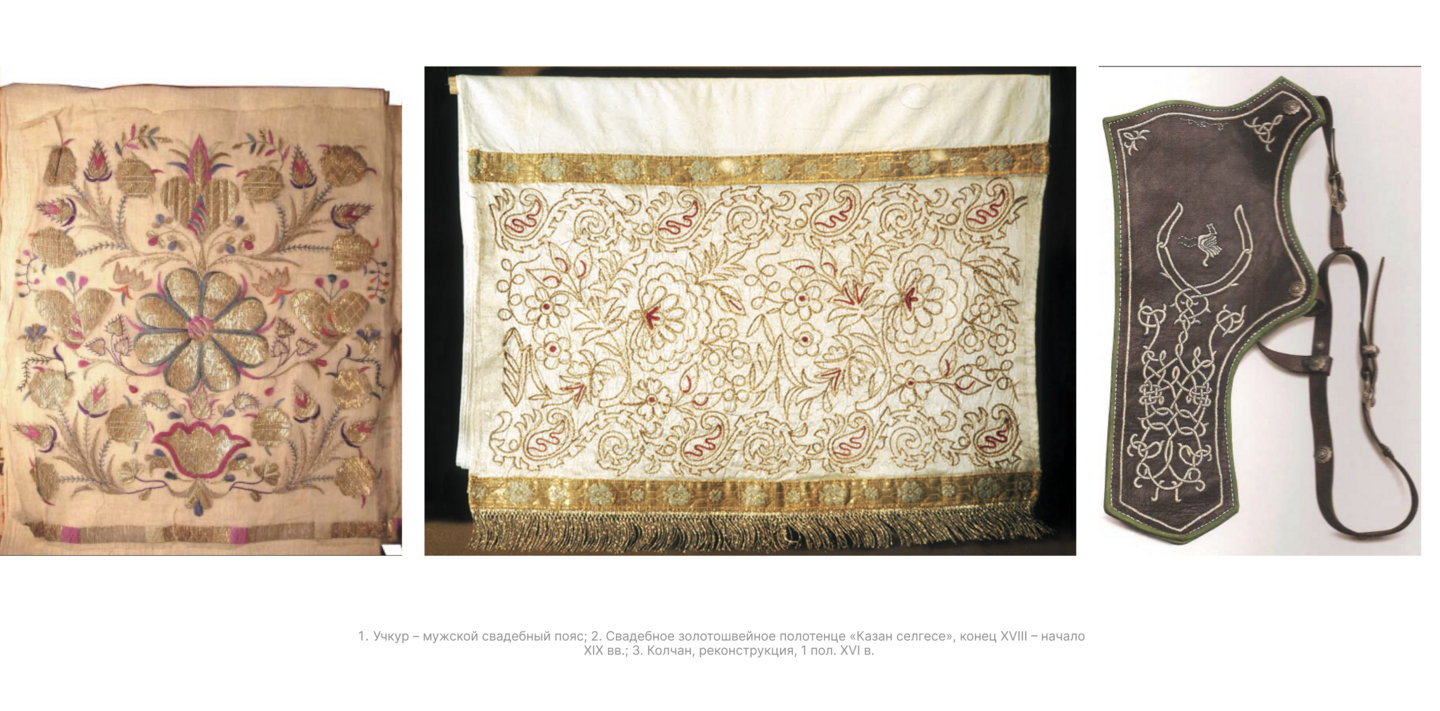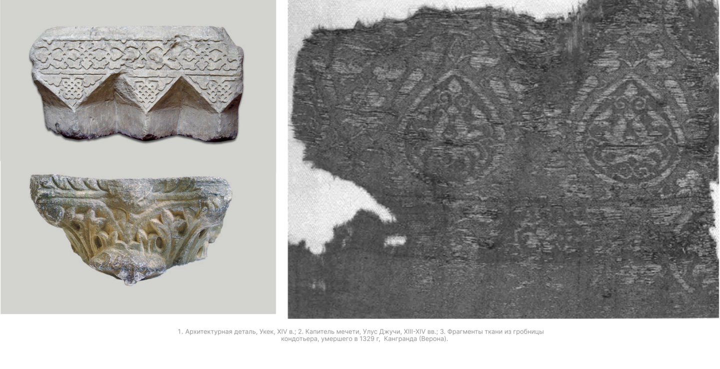 Орнамент же строился на геометрии или, чаще всего, на растительности и природных формах. Через орнамент формировалась общая символическая система, унаследованная позднее татарами.