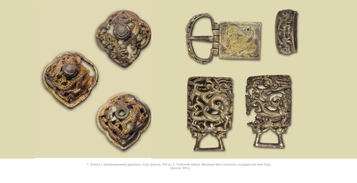Образ дракона У Золотой Орды встречаются артефакты, где изображён «дракон-змей» — на зеркалах, ковшах, украшениях. Такие изображения часто стилизованы, совмещают в себе черты змеи и крылатого существа — знак, который символизировал границу между мирами.