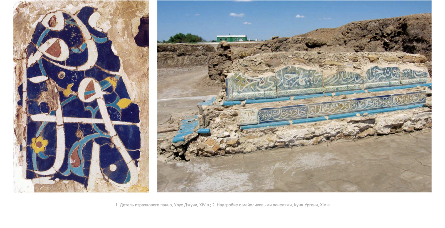 В Орде декоративный орнамент — цветы, листья, растительные розетки, арабески. Они переводят мотивы природы в устойчивый художественный маркер, подходящий для архитектуры, керамики и декоративных предметов — что в свою очередь проявляет слияние степных, тюркских и исламских культурных традиций.