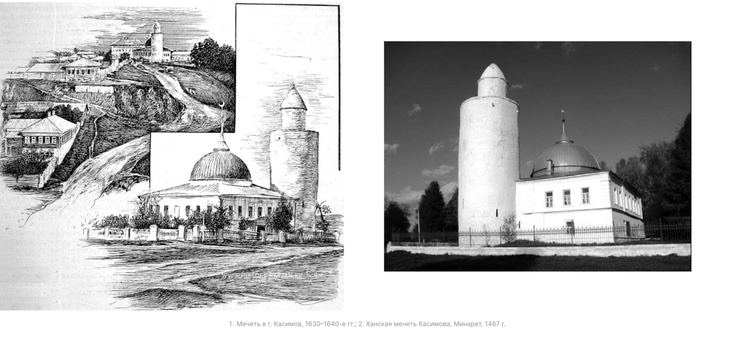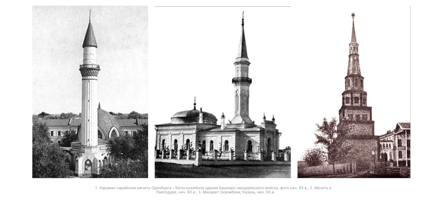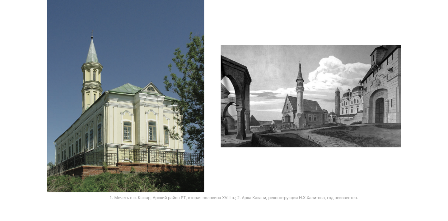 Наличие башен и минаретов указывало на исламскую культурную принадлежность. В условиях утраты политической автономии именно культовые и градостроительные формы стали символами устойчивости татарской идентичности: мечети с арабской эпиграфикой, минареты как знаки мусульманского пространства, крепостные элементы как память о собственных государственных традициях.
