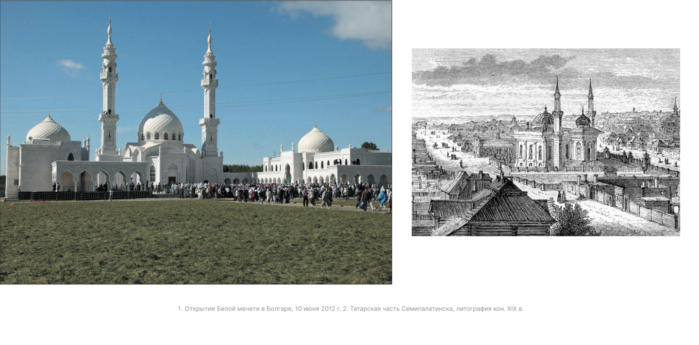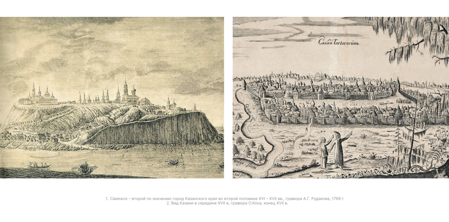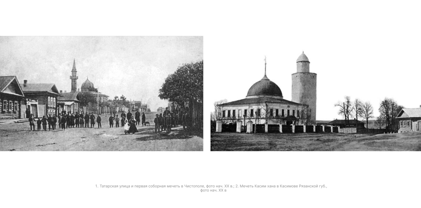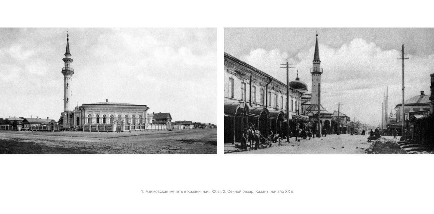 Наличие башен и минаретов указывало на исламскую культурную принадлежность. В условиях утраты политической автономии именно культовые и градостроительные формы стали символами устойчивости татарской идентичности: мечети с арабской эпиграфикой, минареты как знаки мусульманского пространства, крепостные элементы как память о собственных государственных традициях.