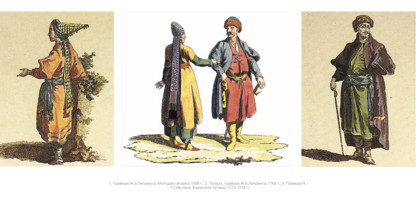Характерные элементы — пояс с богато украшенной пряжкой, сапоги-читек, накидки из тонкого сукна или меха. Всё это формировало узнаваемый визуальный код татарской идентичности.