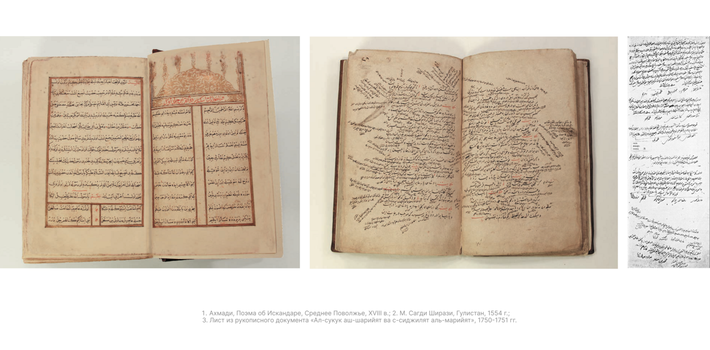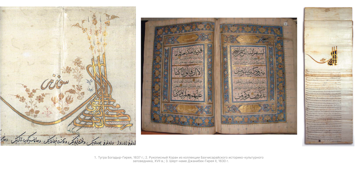 В рукописях и религиозных текстах усиливается декоративность: появляется золочение на заголовках, инициалах, декоративных бордюрах, особенно в Коранах и богословских трудах. Всё это отражает влияние как восточно-исламской книжной культуры, так и булгарской эпиграфической традиции.