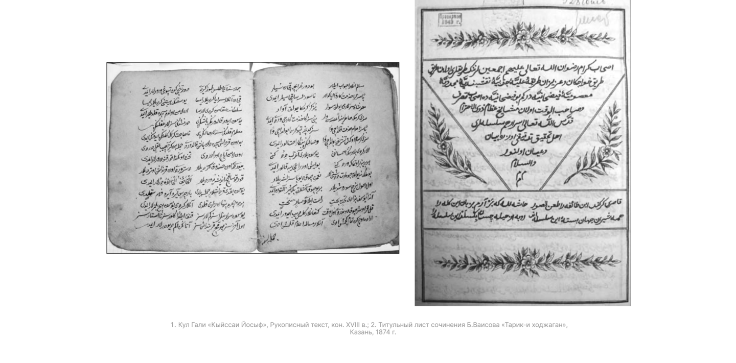 Письменность В этот период татарская письменная культура развивалась на основе арабской графики, унаследованной от булгаро-ордынской традиции. Основным письменным языком оставался тюрки (старотатарский книжный язык) — литературный вариант, соединявший тюркскую основу с заимствованиями из арабского и персидского. Почерк был преимущественно настали́к и насх, характерные для мусульманских книжных центров Евразии: вытянутые, плавные линии, наклонные связки, выразительные штрихи.