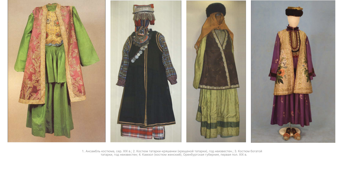 Татарский костюм, долгое время остававшийся консервативным, также видоизменяться: наряду со стандартной рубахой‑туникой, шароварами и простым кафтаном стали появляться более сложные по крою и декору элементы — камзолы и казакины из фабричных тканей, жилеты и плащи со швами и декоративной тесьмой.