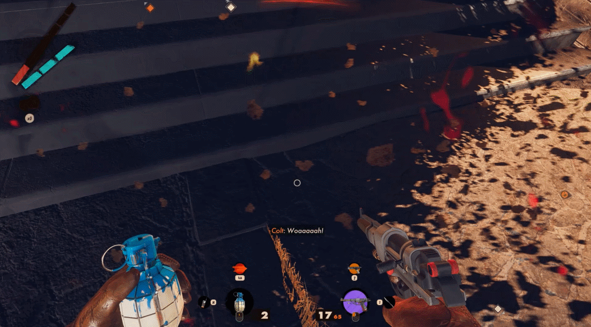 Сходным образом отображаются особые режимы игры, такие как замедление времени или усиление наносимого урона. Помимо того что это помогает игроку сразу же понять, когда режим активен, такие эффекты могут ещё и усиливать их ощущения игрока от применения этих режимов на эмоциональном или физиологическом уровне. Так, например, в GhostRunner небольшое посинение изображения подчёркивает, что сейчас действует замедление времени и нужно сосредоточиться на одном точном ударе.