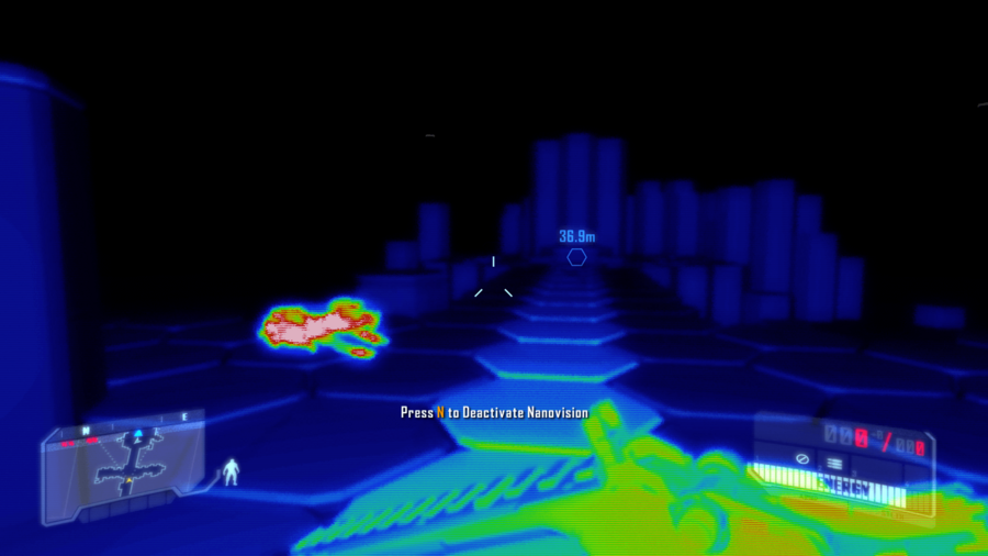 Сравнивая их с «тёмным зрением» в Dishonored, можно заметить что использование визуальных эффектов позволяет балансировать полученные игроком преимущества повышенными рисками. Так «тёмное зрение» почти не имеет недостатков, позволяя видеть силуэты даже сквозь стены, в то время как броня в Crysis сокращает область обзора, а тепловизор, позволяя выделить силуэты врагов, значительно ухудшает общую видимость.