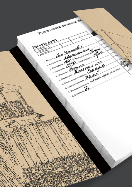В основу обложки и верстки книги легла документная стилистика (личные дела, таблицы, штампы, отпечатки, рукописные и машинные шрифты).