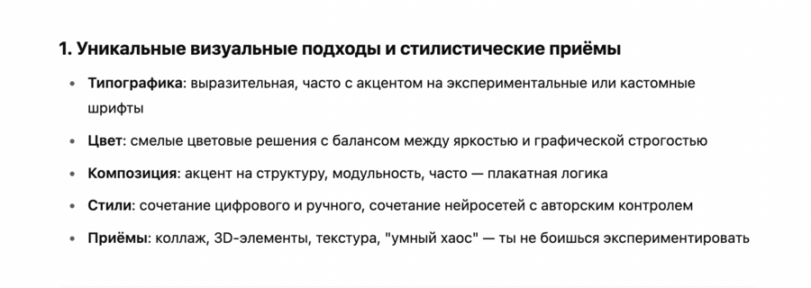 1. Уникальное чувство стилистики и культурного кода, свойственное поколению Z. 2. Свобода работы в разных техниках: от нейросетей до ручных принтов и скульптуры. 3. Умение интегрировать сложные концепты в визуальный стиль, не теряя понятности.