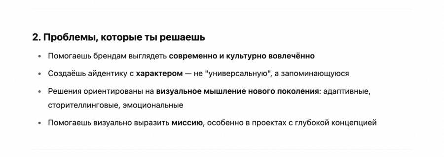 2. Выяви проблемы, которые я решаю своим дизайном, основываясь на визуальном языке и характере моих работ. Какие потребности или задачи клиентов могут быть удовлетворены моим стилем?