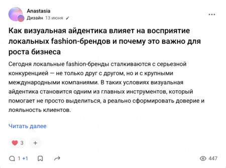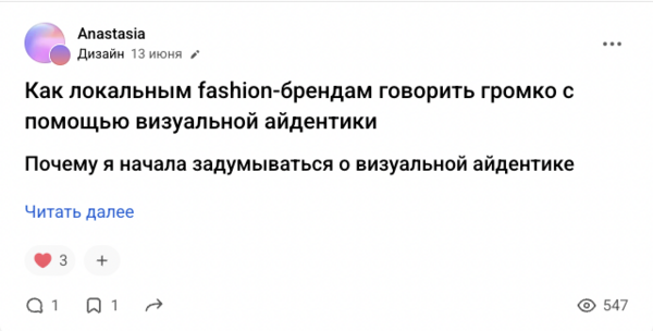 Тему статей (они примерно одинаково достаточно популярны на vc.ru) можно сформулировать как «Важность визуальная айдентика для локальных fashion-брендов»