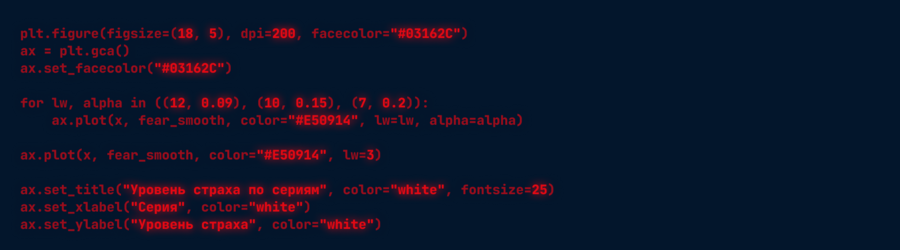 Сначала я собрала реплики персонажей и описания сцен, очистила текст и для каждой серии посчитала, сколько «страшных» слов в ней встречается. Чтобы сравнение было корректным, я учитывала длительность серий и приводила значения к относительной величине. В итоге каждая серия получила численное значение уровня страха.