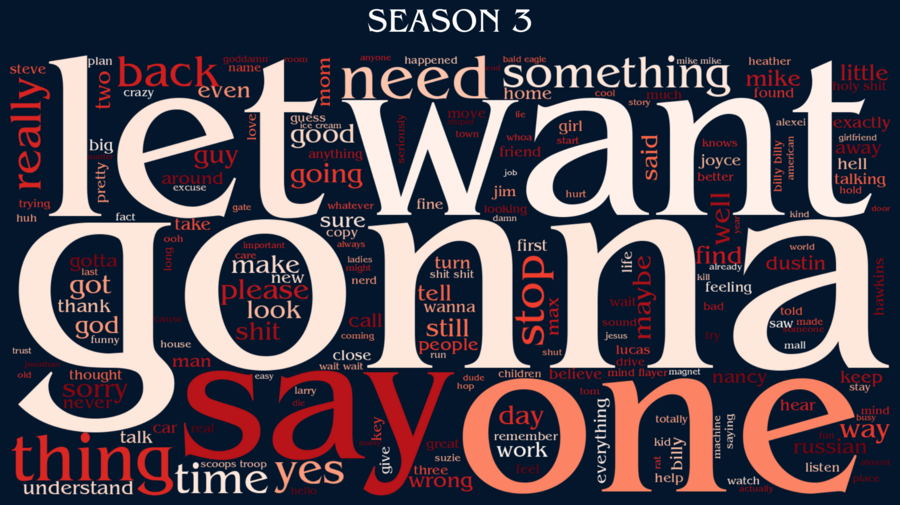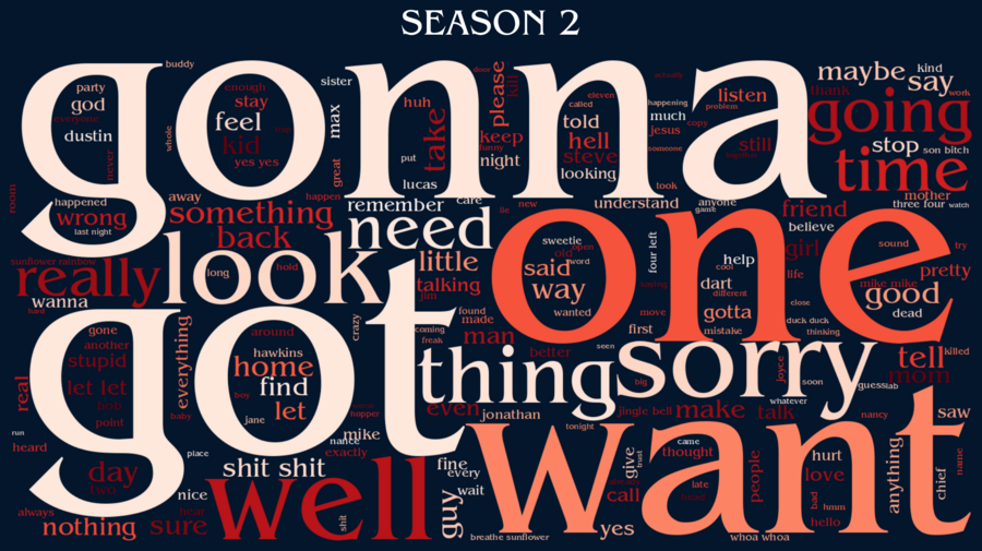 Облако слов показывает самые часто используемые слова в диалогах персонажей за сезон. Размер слова отражает частоту его употребления, что позволяет быстро понять, какие темы, эмоции и мотивы доминируют в речи персонажей.