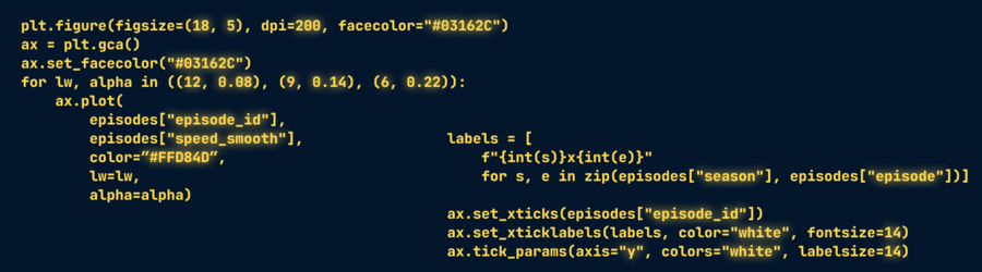 Я перевела время начала и конца каждой реплики в секунды, посчитала её длительность и количество слов. После этого для каждой реплики был рассчитан темп речи — сколько слов персонажи произносят в минуту. Далее я объединила все реплики внутри одной серии и посчитала средний темп речи для каждого эпизода.