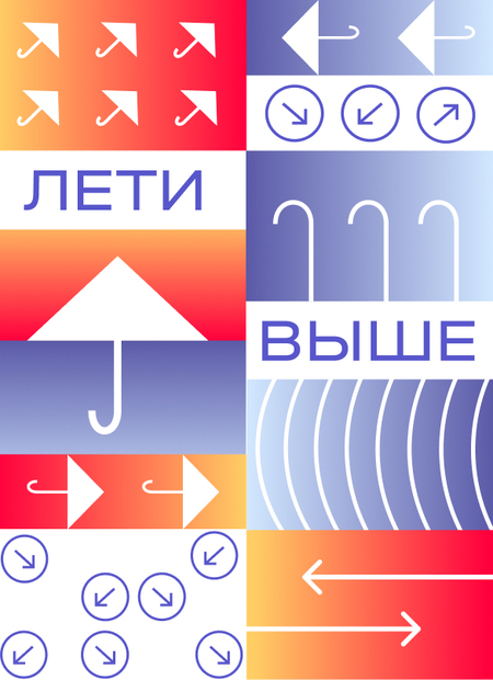 Основными графическими элементами становятся зонты, стрелки, компас и прочие атрибуты, связанные с компанией. Активные анимации и постоянное движение передают ощущение полета и стремление к движению.